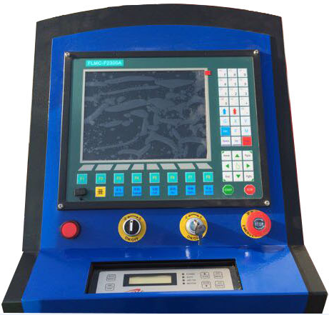該機型控制系統采用上海交大F2300系列;該型火焰/等離子切割機兩用數控系統是一款專為龍門式切割機設計制造的標準型控制系統。擁有完善的切割加工工藝,10.4英寸真彩液晶顯示,一體式鍵盤面板,秉承“交大”的設計傳統,20年切割行業應用實踐,擁有廣泛的用戶認知度。
